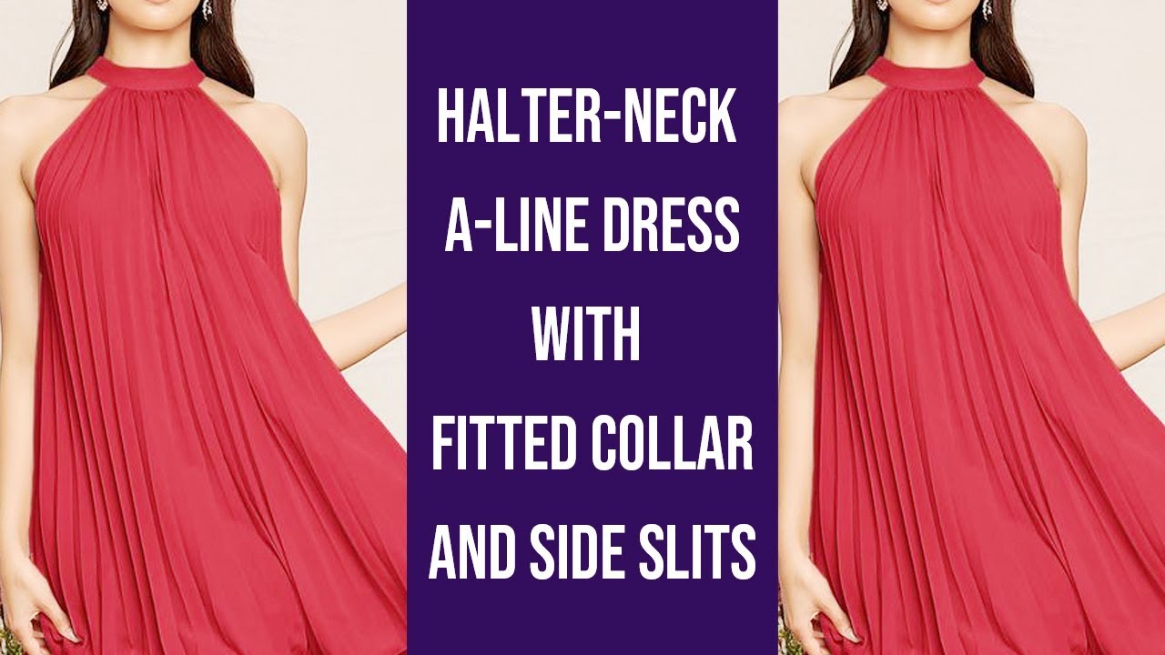 How To Sew A Halter Neck A Line Dress With Fitted Collar Side Slits Youtube